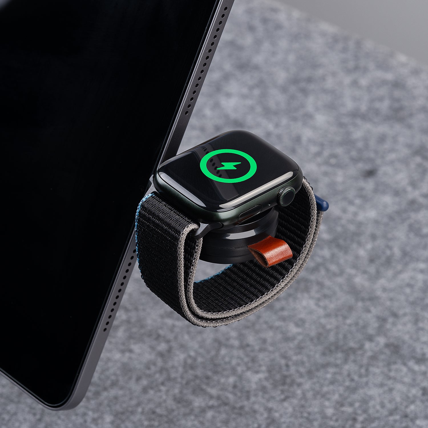 Once connected, the watch snaps into position for secure, hands-free charging with no sliding or adjustment.